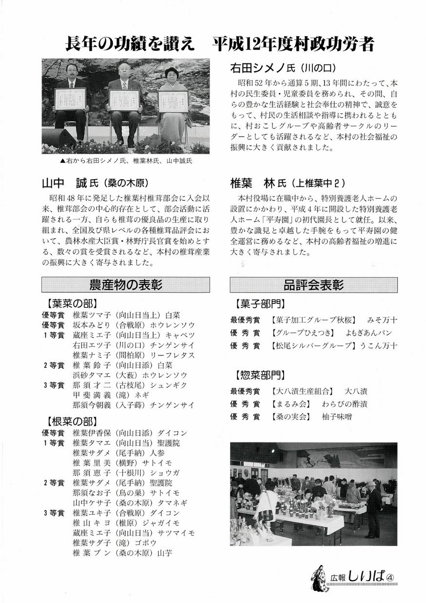 ・長年の功績を讃え 平成12年度村政功労者