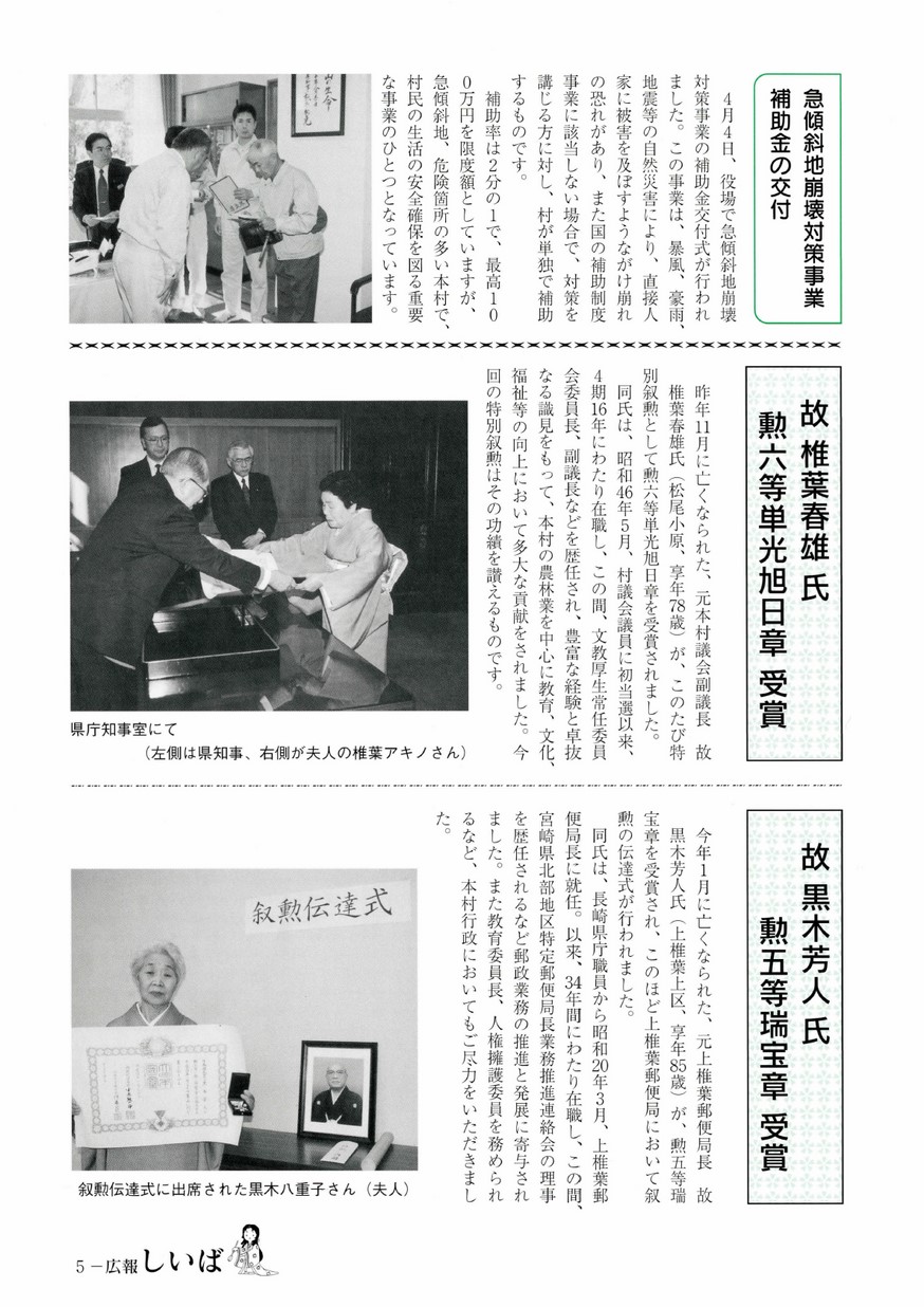 ・故椎葉春雄氏 勲六等単光旭日章受賞