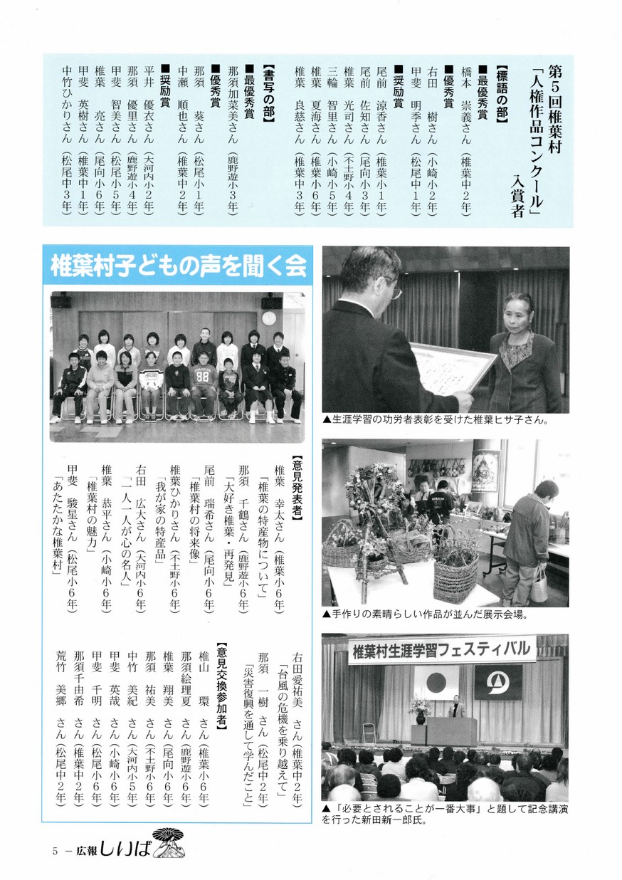 ・第5回椎葉村「人権作品コンクール」入賞者