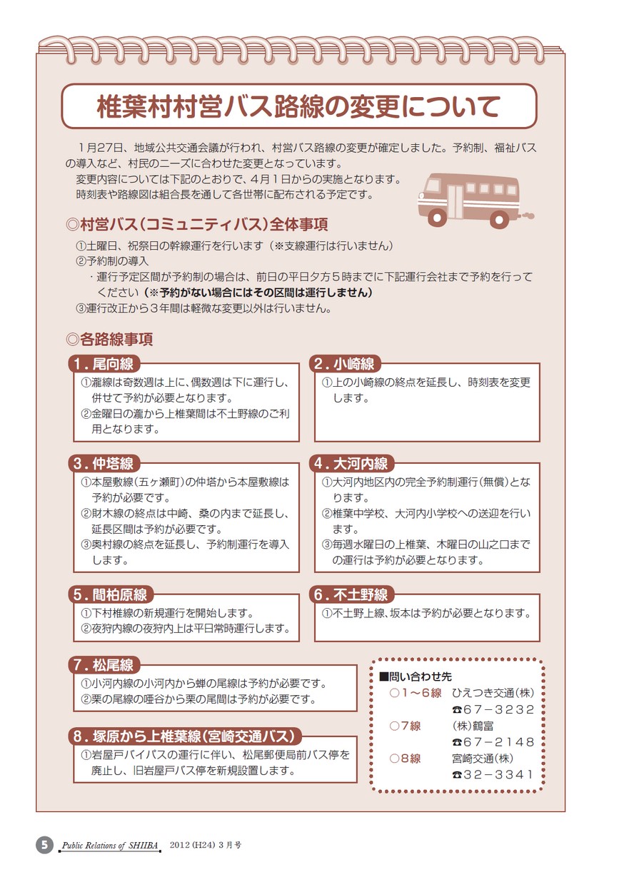 ・椎葉村村営バス路線の変更について